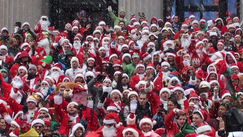 當(dāng)?shù)貢r間2017年12月10日,韓國首爾,在韓國首爾的COEX水族館,身著圣誕老人服裝的韓國潛水員與沙丁魚一同表演,慶祝即將到來的圣誕節(jié)。