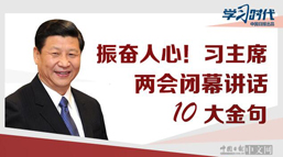 3月20日上午,中共中央總書(shū)記、國(guó)家主席、中央軍委主席習(xí)近平在十三屆全國(guó)人大一次會(huì)議閉幕會(huì)上發(fā)表重要講話。“要幸福就要奮斗”、“沒(méi)有任何力量能夠阻擋中國(guó)人民實(shí)現(xiàn)夢(mèng)想的步伐”、“人間自有公道在!”中國(guó)日?qǐng)?bào)網(wǎng)帶你看十大金句!