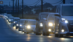 日本時間今日清晨5時59分,福島縣近海發生7.4級地震。 福島縣磐城,民眾疏散造成交通擁堵。