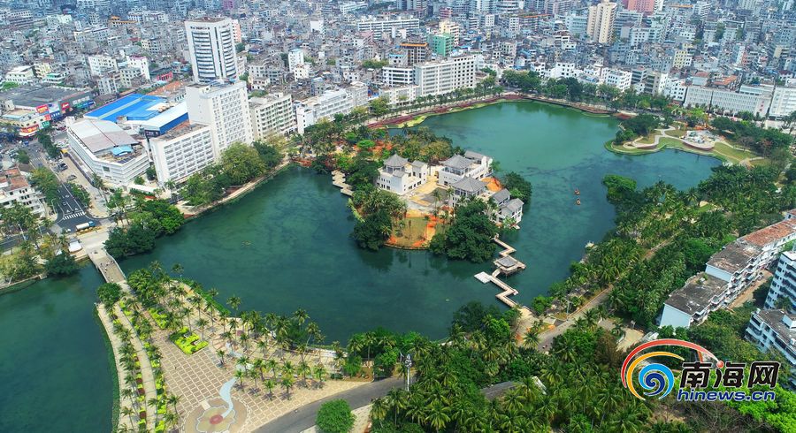 城市的夜色亮了,暖黃和暖白的燈光勾勒出曼妙的天際線……空中俯瞰東湖全景周邊道路種植這各類樹木,郁郁蔥蔥。已在三角池附近住了四十余年的老海口歐英州就說,記憶中那個三角池還在,但是變得更美了。