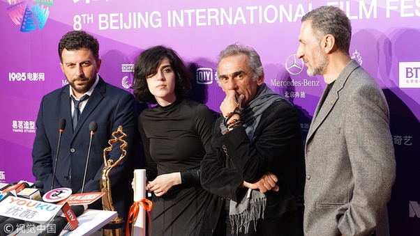 4月18日,第八屆北京國際電影節(jié)“天壇獎”入圍影片《奧克塔夫》在北京舉行新聞發(fā)布會,該劇的導(dǎo)演塞爾吉·約安·切利比達奇、編劇詹姆斯·奧利維爾出席活動。