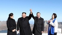 文在寅夫婦和金正恩夫婦在天池周邊散步,韓國外交部長官康京和等隨同。