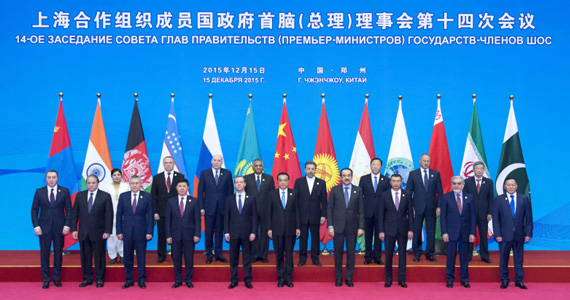 15日上午,李克強(qiáng)總理在鄭州國際會(huì)展中心與出席上海合作組織成員國政府首腦(總理)理事會(huì)第14次會(huì)議的成員國、觀察員國領(lǐng)導(dǎo)人和國際組織負(fù)責(zé)人集體合影。